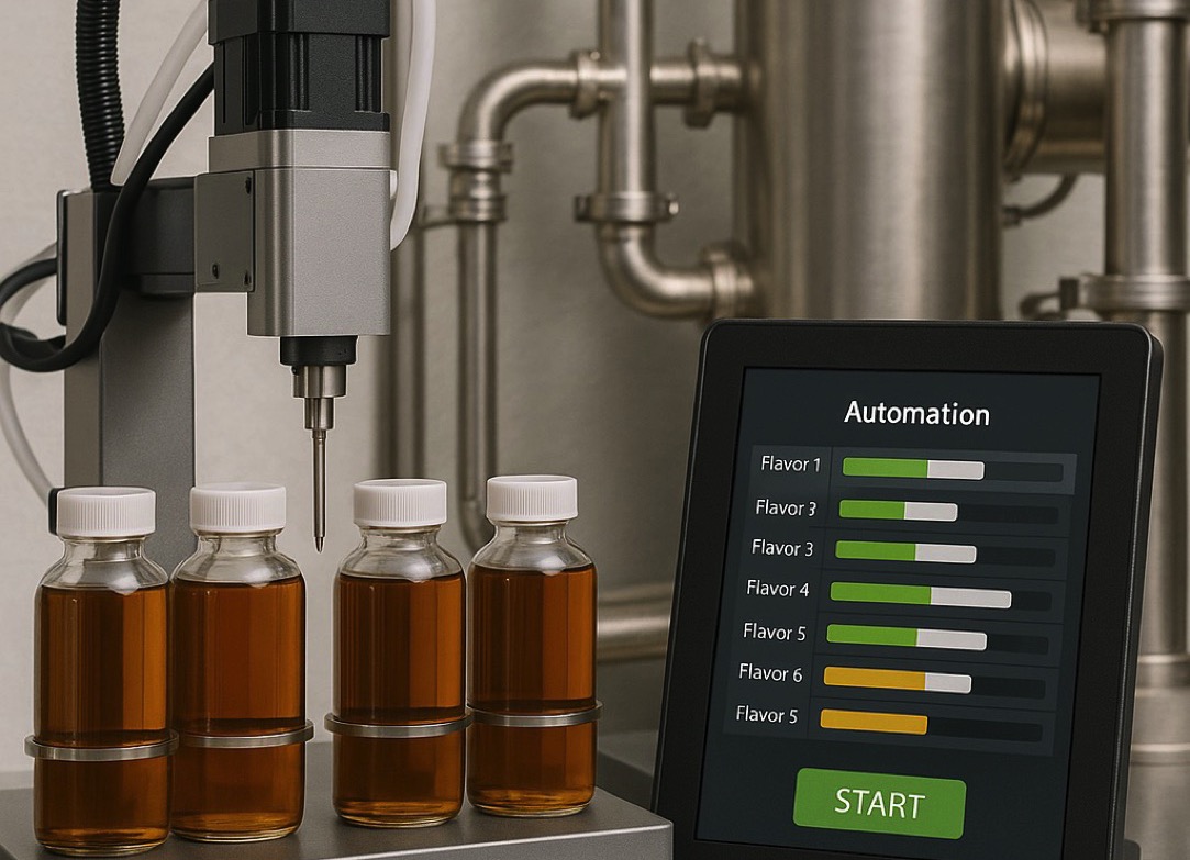 The goal was to design a system for the automation of tobacco flavor mixing that would ensure maximum accuracy when combining various ingredients. The customer required the process to be fully automated and to guarantee consistent quality of the final product. The main challenge was the precise control of the mixing process because different ingredients vary in viscosity, which could affect the flow and thus the accuracy of the final mixture.