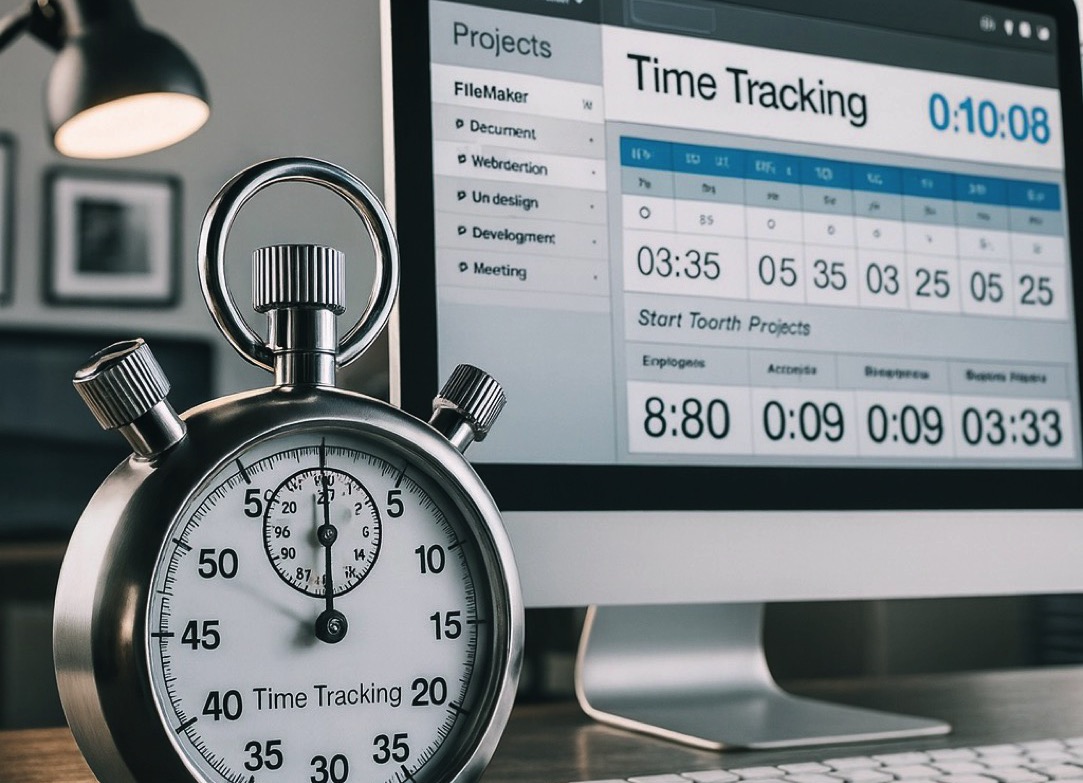 A customer who already uses FileMaker for project management wanted to create a custom web application for tracking the time external workers, such as graphic designers, spend on tasks. Initially, they used the commercial cloud solution Clockify, which offered more features than necessary and was costly due to monthly licensing fees. The main goal was to create a custom application to ensure independence from licenses and simplify usage by focusing only on essential features.