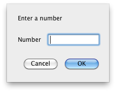 SDialog_InputDialog( "Dialog with one text field" ; "" ; "text¶textField" ; "Initial Text" )