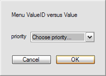 SDialog_InputDialog( "Menu ValueID versus Value" ; "" ; "menu¶priority" ; "11¶8¶6¶4¶1" ; "Very High¶High¶Normal¶Low¶Very Low" ; "Choose priority..." )